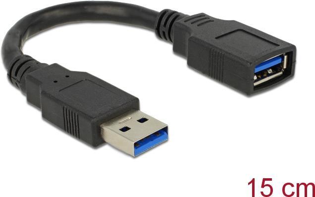 Delock - USB-Verlängerungskabel - USB Typ A (M) zu USB Typ A (W) - USB3.0 - 15cm - Schwarz (82776)