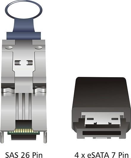 Dieses SAS-Kabel mit einer Länge von 1 m ermöglicht es Ihnen, ein mini SAS 26pin Gerät an 4x eSATA anzuschließen.