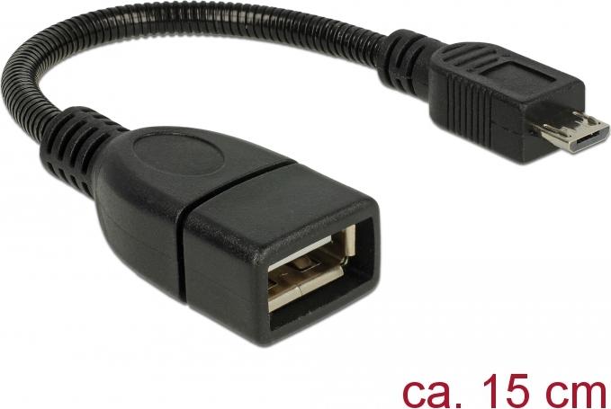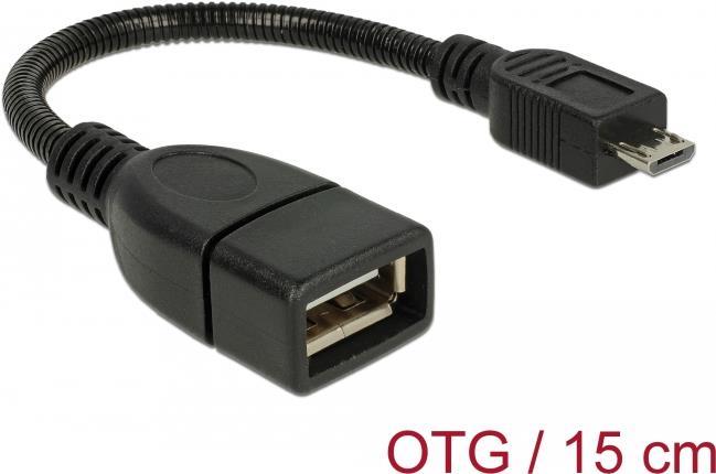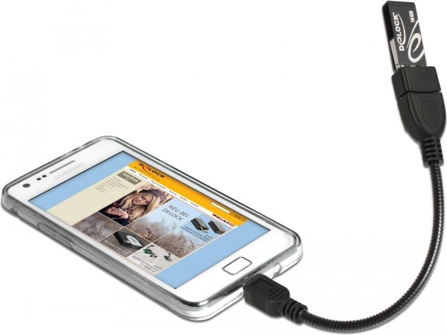 Mit diesem USB micro Kabel von Delock können Sie den USB micro-B Port Ihres Mobilgerätes in eine USB-A Buchse umwandeln. Somit können Sie z.B. HDDs, Speichersticks etc. mit Standard USB Anschluss an Handys, Smartphones, Tablet-PCs etc. mit OTG Unterstützung anschließen. Die OTG Funktion ermöglicht eine direkte Datenübertragung zwischen Ihrem Mobilgerät und dem USB Gerät, ohne Verbindung zu einem Computer.