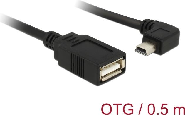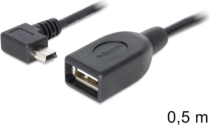 DeLOCK - USB-Kabel - Mini-USB, Typ B (M) - USB Typ A, 4-polig (W) - 50cm (Hi-Speed OTG) - 90-Grad-Anschluss (83356)