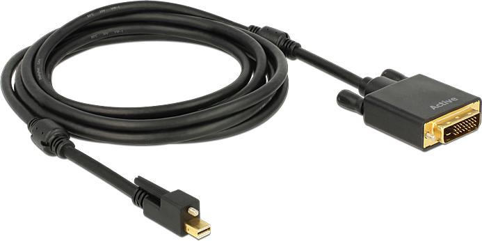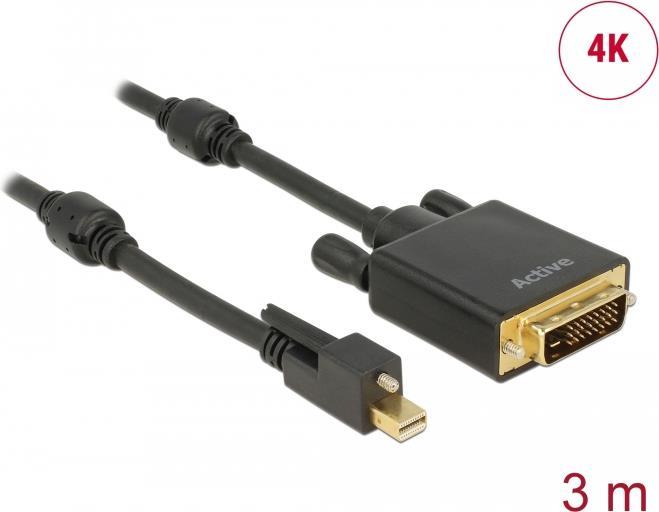 DeLOCK - Videokabel - Mini DisplayPort (M) - DVI-D (M) - 3,0m (DisplayPort 1,2) - Flügelschrauben - Schwarz (83727)