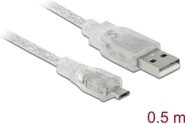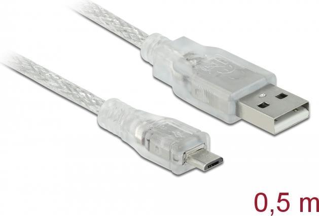 Delock - USB-Kabel - Micro-USB Typ B (M) zu USB (M) - USB2.0 - 50cm - durchsichtig (83897)
