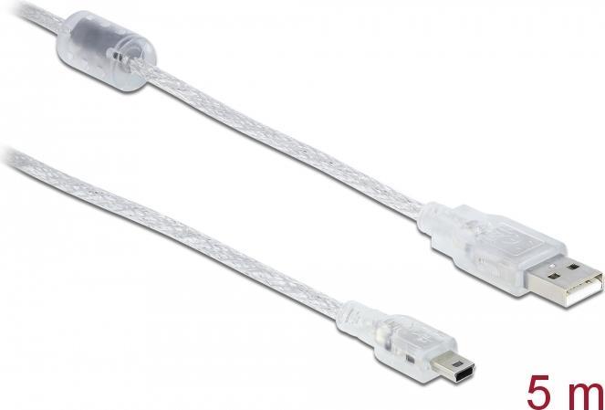 DeLOCK - USB-Kabel - USB (M) - Mini-USB, Typ B (M) - 5,0m (USB/USB2.0) - durchsichtig (83909)