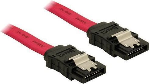 Dieses SATA Kabel von Delock dient zum internen Anschluss verschiedener SATA Geräte wie z.B. SATA Festplatten, SATA Controller Karte, etc . Zusätzliches Einrasten beim Anschließen der Kabel wird durch Metall Clips am SATA Stecker ermöglicht.