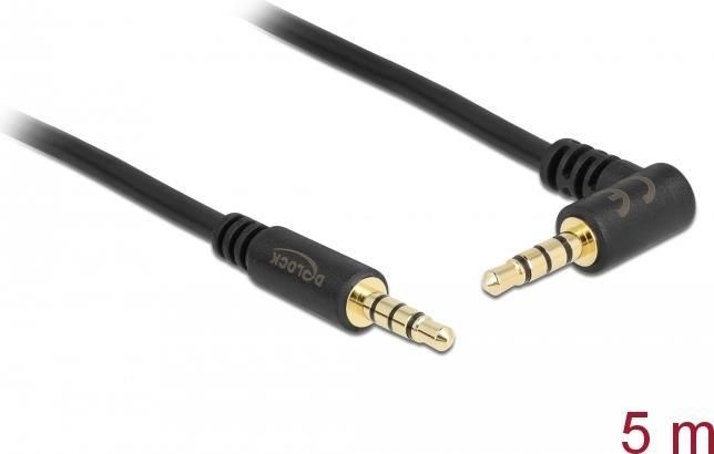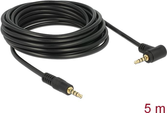 DeLOCK - Audiokabel - 24 AWG - Mini-Phone 3,5 mm, 4-polig (M) - Mini-Phone 3,5 mm, 4-polig (M) - 5,0m - Schwarz - Winkelanschluss (84743)