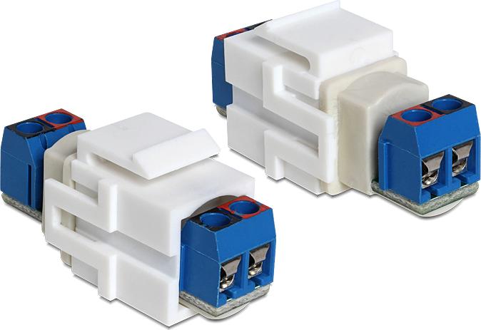 Dieses Modul von Delock können Sie z. B. zum Verlängern eines Lautsprecherkabels verwenden. Durch die standardisierten Abmessungen ist es zur einfachen Snap-In Montage in verschiedenen Halterungen, wie z. B. Keystone Patchpanel, Dosen oder Gehäuse geeignet.