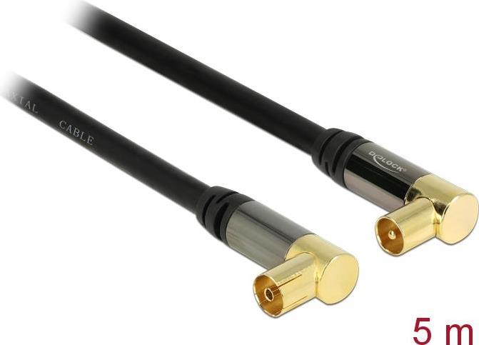 DeLOCK - Antennenkabel - IEC-Anschluss (M) - IEC-Anschluss (W) - 5,0m - Koax - (RG-6/U) - 85 dB - Schwarz - Verbindungsstück im 90°-Winkel (88917)