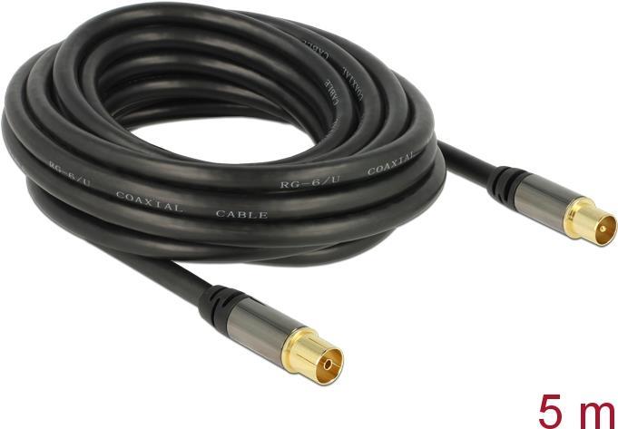 DeLOCK - Antennenkabel - IEC-Anschluss (W) - IEC-Anschluss (M) - 5,0m - (RG-6/U) - 85 dB - Schwarz (88925)
