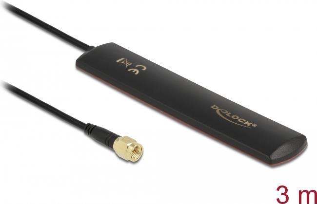 DeLOCK - Antenne - LTE/GSM/UMTS/WLAN 2,4 GHz/Bluetooth/ZigBee - innen - 3 dBi - ungerichtet - Schwarz (88987)