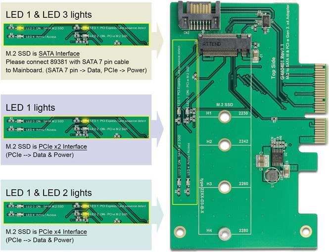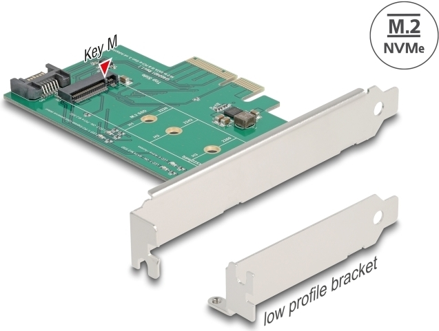 Diese PCI Express Karte von Delock erweitert Ihren PC um einen M.2 NGFF Slot. In die Karte können Sie ein M.2 NGFF Modul im 2280, 2260, 2242 oder 2230 Format anschließen. Bei Anschluss eines SATA Moduls muss der SATA 7 Pin Anschluss mit dem Mainboard verbunden werden.