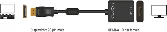| Produktbeschreibung | DeLOCK Adapter Displayport 1.2 male > HDMI female 4K Active Videokonverter - Parade PS171 - Schwarz |
