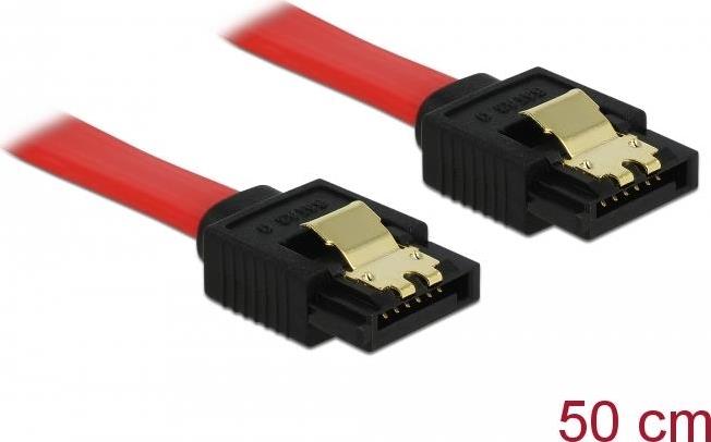 Delock - SATA-Kabel - Serial ATA 150/300/600 - SATA (M) zu SATA (M) - 50cm - Daumenklemmen - Rot - für P/N: 89270, 89271 (82677)