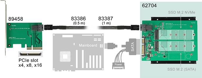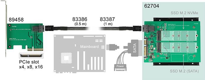 | Produktbeschreibung | DeLOCK Converter SATA 22 pin / SFF-8643 NVMe > 1 x M.2 NGFF Key M + 1 x M.2 NGFF Key B - Speichereinschubadapter |