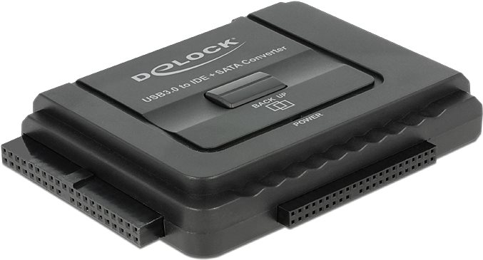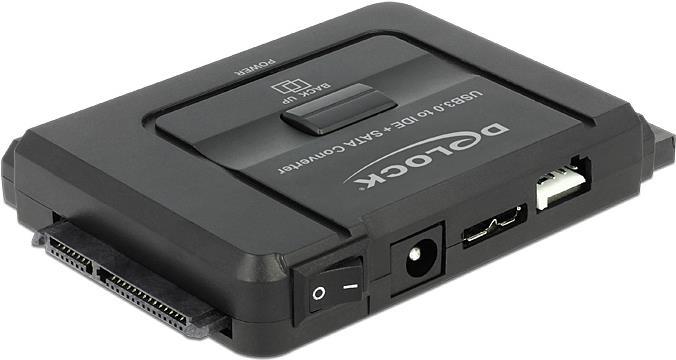Dieser Delock-Konverter ermöglicht den Anschluss von 2,5" oder 3,5" IDE- und SATA-Laufwerken an einen USB-Port Ihres PCs. So können Sie Ihr Laufwerk, ohne ein externes Gehäuse, direkt an Ihren USB-Anschluss anschließen. Das mitgelieferte Netzteil versorgt den Konverter und die angeschlossenen Laufwerke mit Strom. Die Backup-Funktion ermöglicht Backups von Ihrem PC auf eine angeschlossene Festplatte oder SSD.