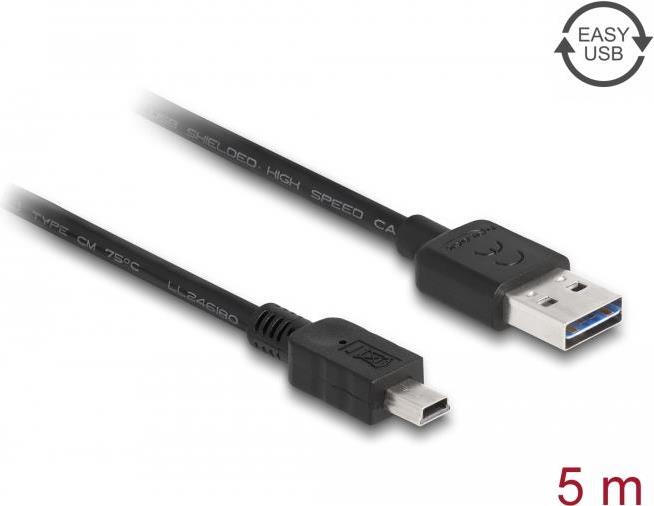 DeLOCK EASY-USB - USB-Kabel - USB Typ A, 4-polig (M) - Mini-USB, Typ B (M) - 5,0m - Schwarz (83365)