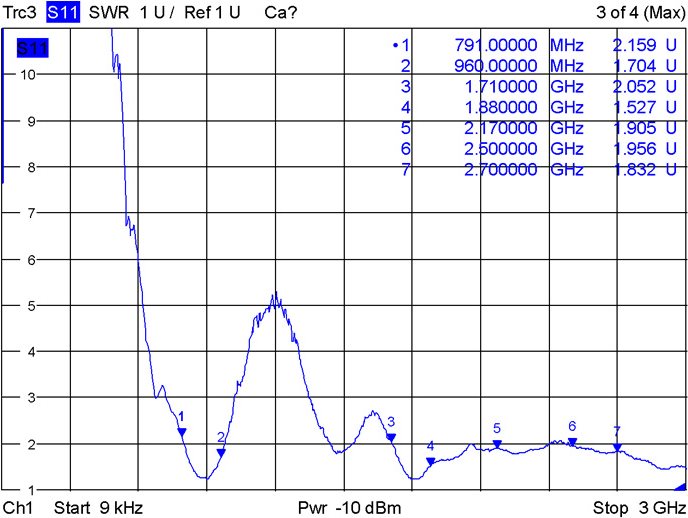 2500 - 2700 MHz, 1710 - 2170 MHz, 791 - 960 MHz |