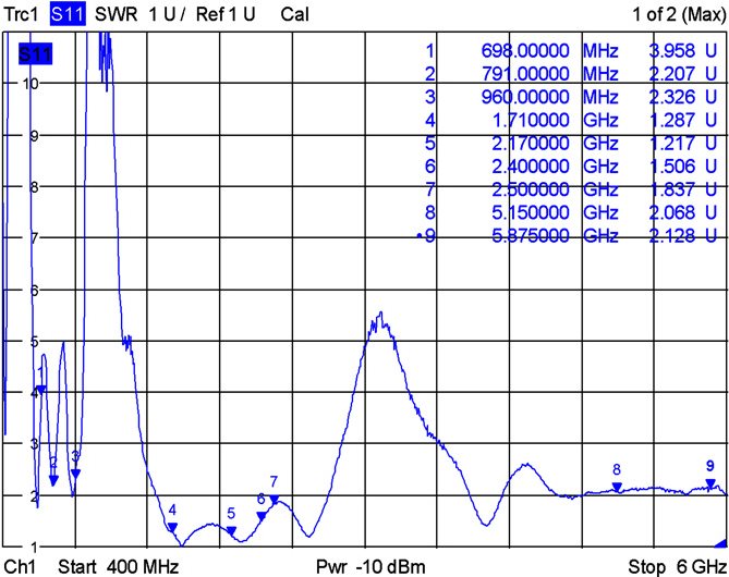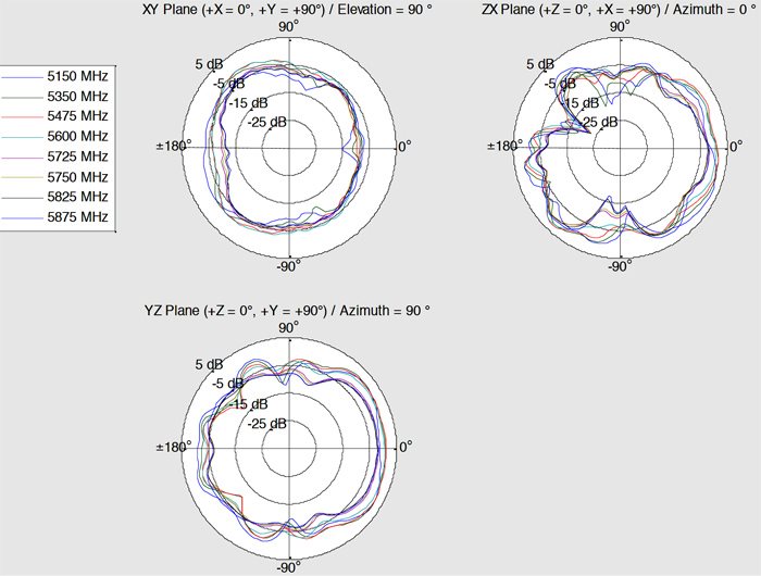 2.4 - 2.5 GHz, 5.15 - 5.875 GHz, 824 - 960 MHz, 698 - 791 MHz, 1710 - 2170 MHz |