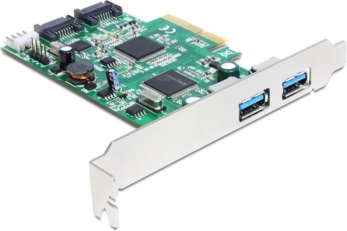 DeLOCK PCI Express Card > 2 x external USB 3.0, 2 x internal SATA 6 Gb/s - Speicher/USB3.0-Controller - USB 3.0 / SATA 6Gb/s - PCIe 2.0 x4 |