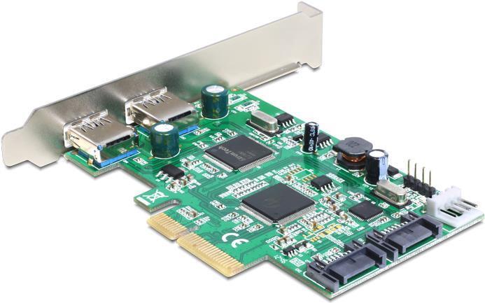 DeLOCK PCI Express Card > 2 x external USB3.0, 2 x internal SATA 6 Gb/s - Speicher/USB3.0-Controller - USB3.0 / SATA 6Gb/s - 600MBps - PCIe 2,0 x4 (89359)