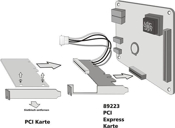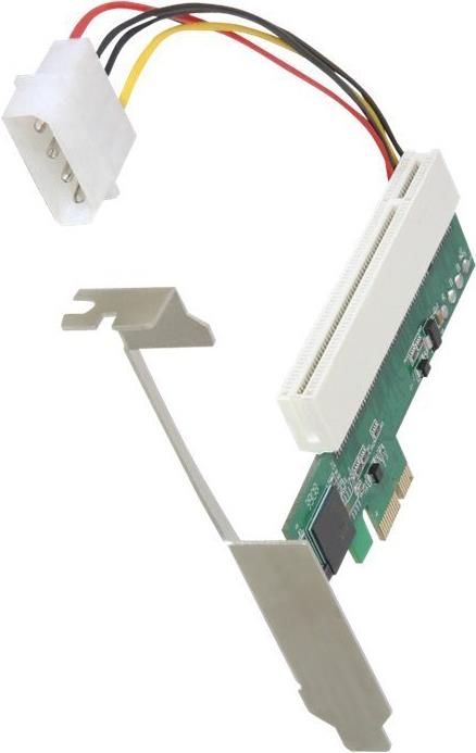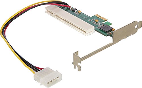 Die PCI Express x1 Karte von Delock bietet Ihnen die Möglichkeit Low-Profile PCI-Erweiterungskarten zu verwenden oder zeitgleich Ihren PC um eine weitere PCI-Schnittstelle zu erweitern. Zudem können Sie bedingt auch Standard PCI Karten anstecken, wobei eventuell einige Ports nicht verwendet werden können, wenn diese außerhalb der Öffnung liegen. Die Karte lässt sich ganz einfach installieren und wird über den vormontierten 4pin Molex-Steckeranschluss mit Strom über das PC Netzteil versorgt. Mit Hilfe der Öffnung können Sie die PCI Karte im Gehäuse leichter erreichen und gegebenenfalls verschiedene Geräte anschließen.