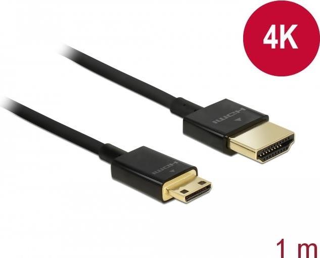 Delock Slim Premium - HDMI-Kabel mit Ethernet - 19 pin micro HDMI Type D männlich zu HDMI männlich - 1,0m - Dreifachisolierung - Schwarz - 4K Unterstützung (84776)