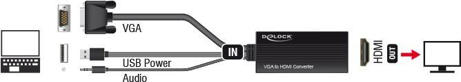 DeLOCK VGA to HDMI Adapter with Audio - Video- / Audio-Adapter - HDMI / VGA - 25 cm