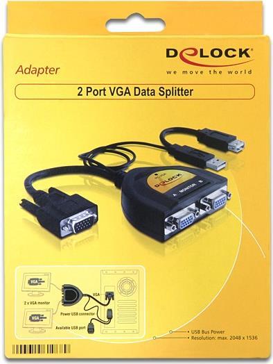 | Produktbeschreibung | DeLock 2 Port VGA Data Splitter - Video-Verteiler - 2 Anschlüsse |