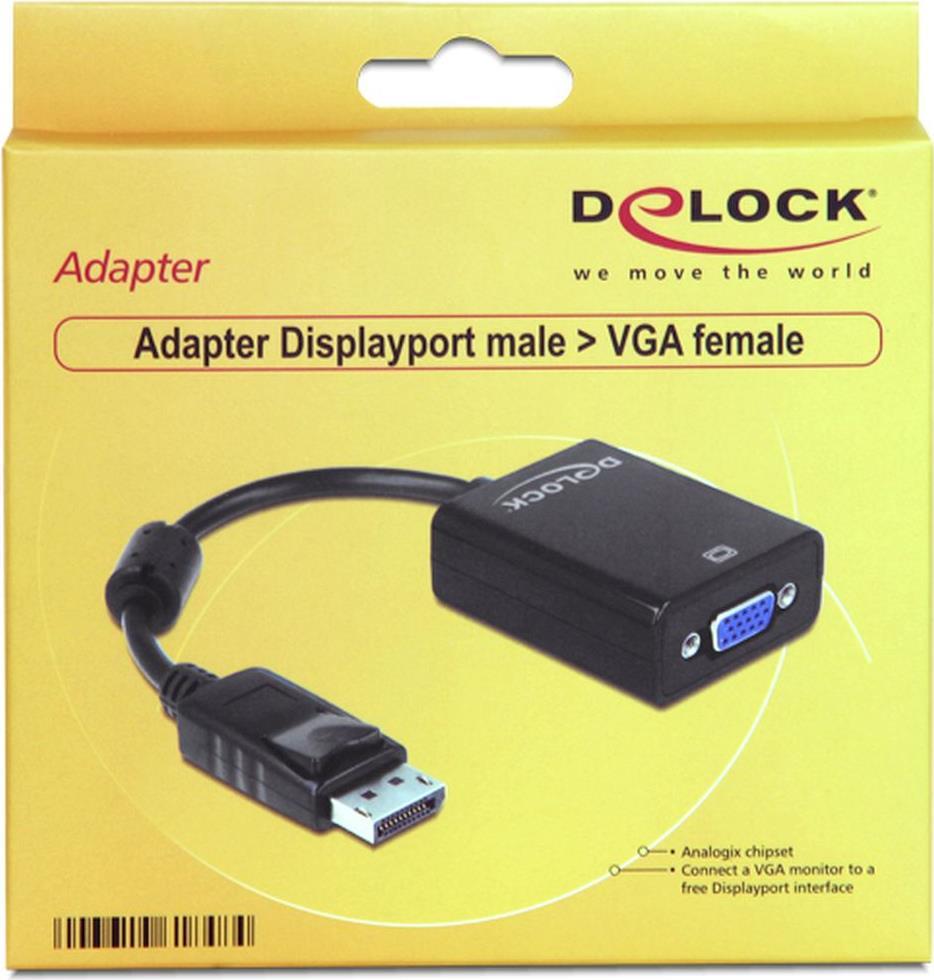 Delock Adapter DisplayPort 1.2 Stecker > VGA Buchse schwarz (61848)