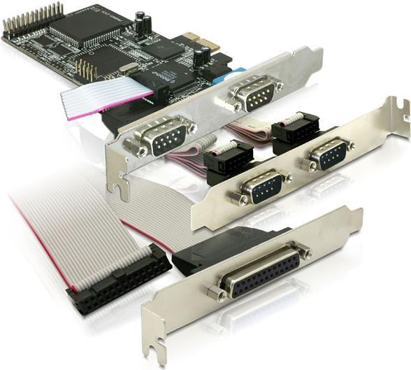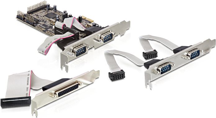 Die DeLock PCI Express Karte erweitert Ihren PC um vier externe serielle, sowie eine externe parallele Schnittstelle. Sie können Geräte wie Scanner, Drucker, Maus etc. an die Karte anschließen.