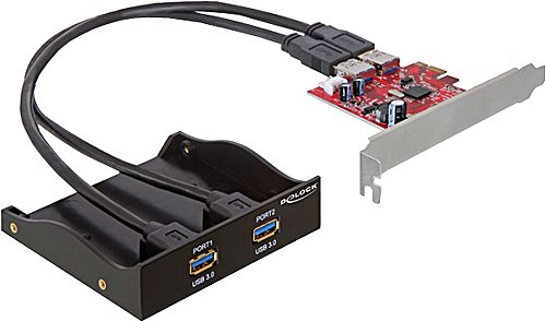 Dieses USB 3.0 Front Panel von Delock dient zum Einbau in einen freien 3.5 Schacht Ihres Computers und kann mit Hilfe der beiliegenden PCI Express Karte intern angeschlossen werden. Er erweitert Ihr System um zwei USB 3.0 Ports, die zudem abwärtskompatibel zu USB 2.0 und USB 1.1 sind. Somit können Sie verschiedene USB Geräte wie z.B. Docking Station, Card Reader, externe Gehäuse etc. anschließen.