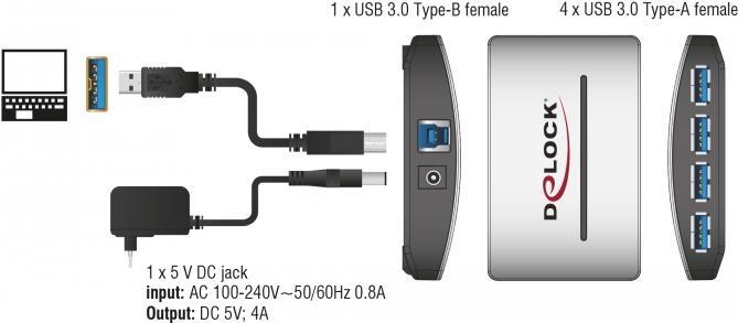 DeLock USB 3.0 externer HUB 4 Port - Hub - 4 Anschlüsse - Desktop |