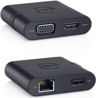 Mit dem Dell Adapter - USB-C zu HDMI/VGA/Ethernet/USB 3.0 können Sie Ihr Mobilgerät an ein externes Display wahlweise mit HDMI- oder VGA-Ausgang anschließen.