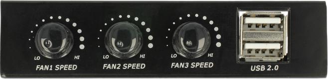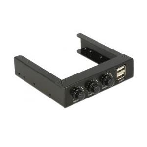 Dieses Front Panel von Delock dient dem Einbau in einen freien 3.5\'\' Schacht des Computers. Es verfügt über zwei USB 2.0 Ports sowie drei Drehregler zur Lüftersteuerung.