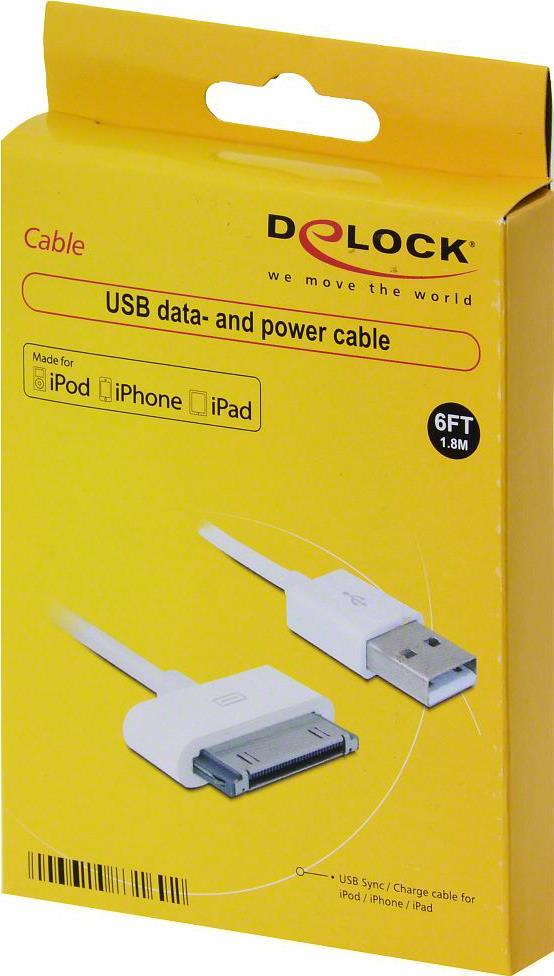 Dieses Daten- und Ladekabel von Delock dient zum Anschluss an die Standard USB Schnittstelle des Notebooks oder PCs. Somit können Sie schnell und einfach Ihr iPhone, iPad oder iPod aufladen sowie Daten übertragen.