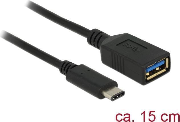 • Delock Adapter SuperSpeed USB (USB 3.1, Gen 1) USB Type-C™ Stecker > USB Typ A Buchse 15 cm schwarz (65634)