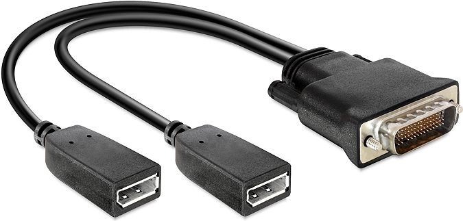 Dieser Adapter von Delock dient zum Anschluss an eine Grafikkarte mit DMS-59 Port und ermöglicht den Anschluss von bis zu zwei Monitoren mit Displayport Schnittstelle.