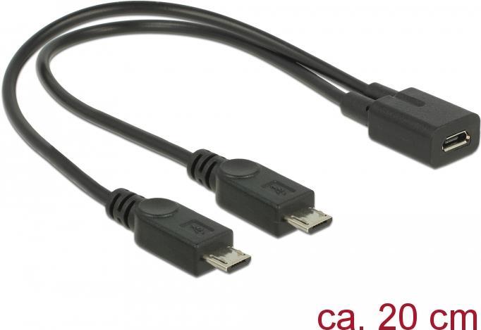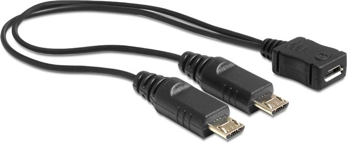 Dieses USB micro-B Kabel von Delock können Sie mit Hilfe eines anderen Kabels an einen freien USB Port anschließen. Somit können Sie z. B. zwei Mobilgeräte mit USB micro-B Schnittstelle gleichzeitig aufladen.