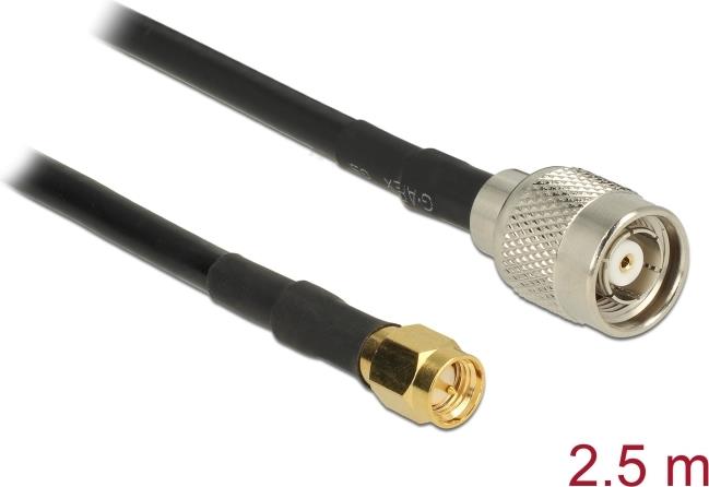DeLOCK - Antennenkabel - RP-TNC (M) bis SMA (M) - 2,5m - Koax - Schwarz (89514)