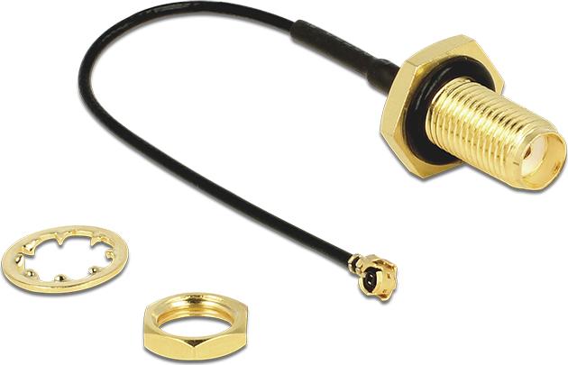 Dieses Delock Antennenkabel dient der Zuführung eines Antennensignals in das Innere eines Gerätes. Durch den losen Dichtring auf der Grundplatte an der SMA Einbaubuchse wird ein spritzwassergeschützer Anschluß am Gerät erreicht.