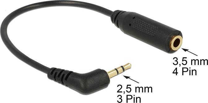DeLOCK - Audio-Adapter - Stereostecker für Sub-Mini Telefon 2,5 mm (M) - bis - Mini-Phone 3,5 mm, 4-polig (W) - 17cm - Schwarz - 90° links abgewinkelter Anschluss (65674)