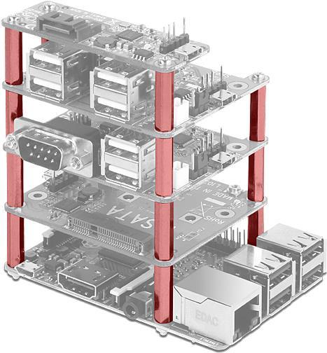 Mit diesem Zubehör Set von Delock können Sie verschiedene Zusatzmodule wie Adapter oder Konverter an Ihrem Raspberry Pi Board befestigen. Des Weiteren können Sie mit diesem Zubehör mehrere Raspberry Pi Boards übereinander montieren.