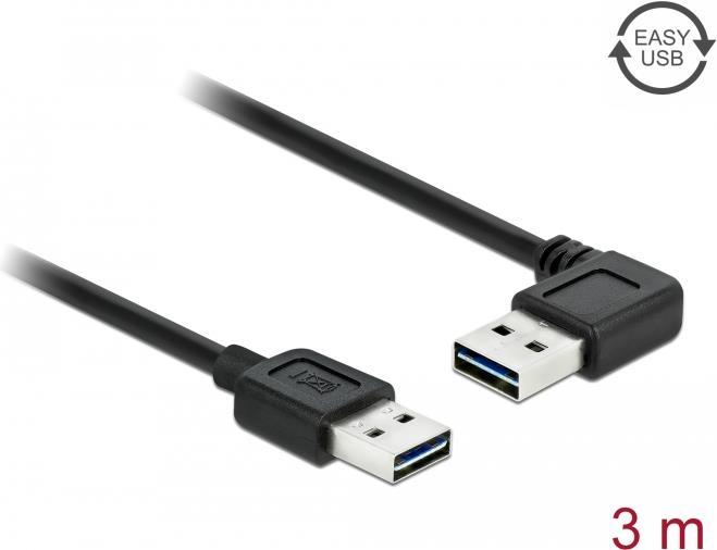 DeLOCK EASY-USB - USB-Kabel - USB Typ A, 4-polig (M) - USB Typ A, 4-polig (M) - 3,0m (USB/USB2.0) - 90-Grad-Anschluss - Schwarz (83466)