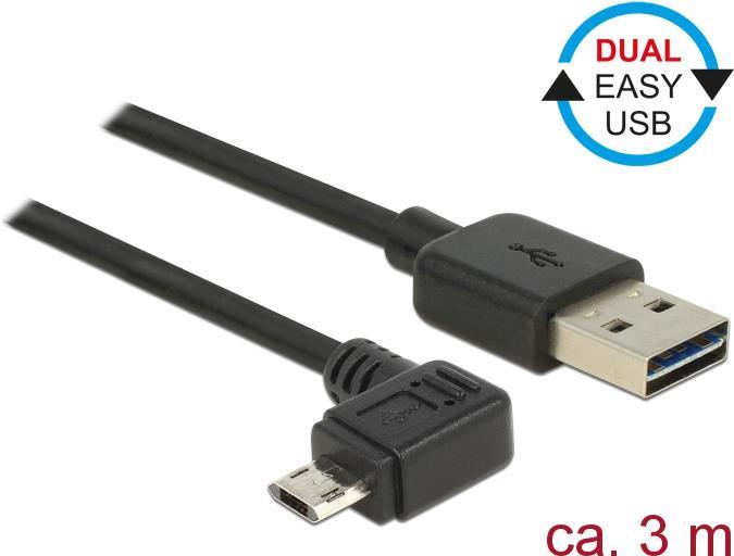 Delock - USB-Kabel - USB (M) gerade zu Micro-USB Typ B (M) gewinkelt - USB2.0 - 3,0m - umkehrbare Stecker - Schwarz (83854)