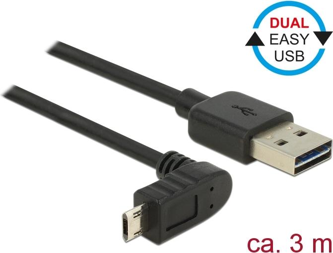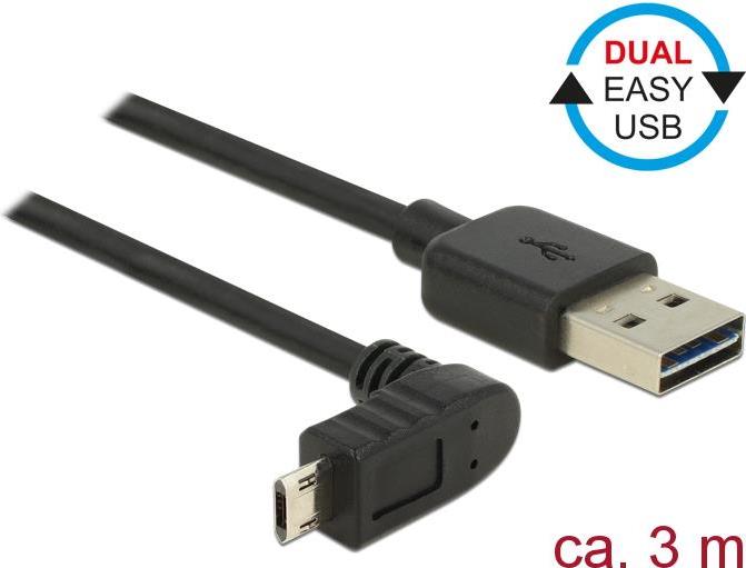 DeLOCK - USB-Kabel - USB (M) gerade bis Micro-USB Type B (M) gewinkelt - USB2.0 - 3,0m - umkehrbare Stecker - Schwarz (83857)