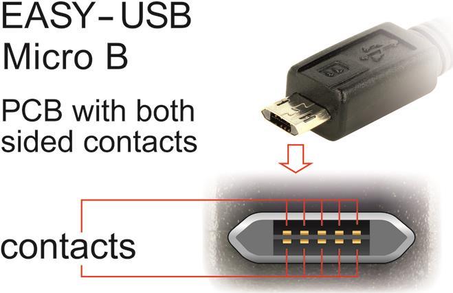 DeLOCK EASY-USB - USB-Kabel - USB (M) - bis - 5-polig Micro-USB Typ B (M) - 50cm (USB/USB2.0) - umkehrbarer A-Anschluss, umkehrbarer Mikro B Stecker - weiß (84806)