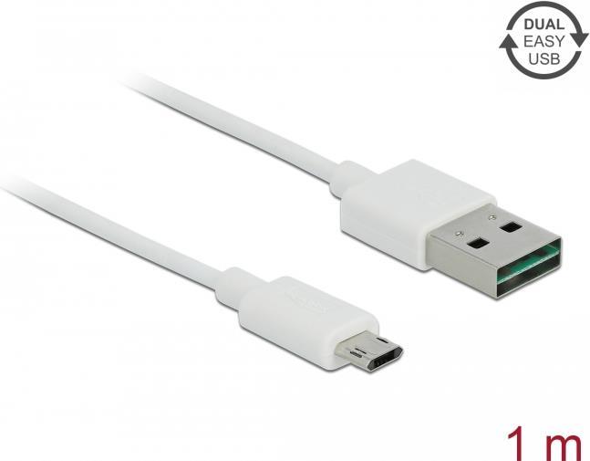 DeLOCK EASY-USB - USB-Kabel - USB (M) - bis - 5-polig Micro-USB Typ B (M) - 1,0m (USB/USB2.0) - umkehrbarer A-Anschluss, umkehrbarer Mikro B Stecker - weiß (84807)