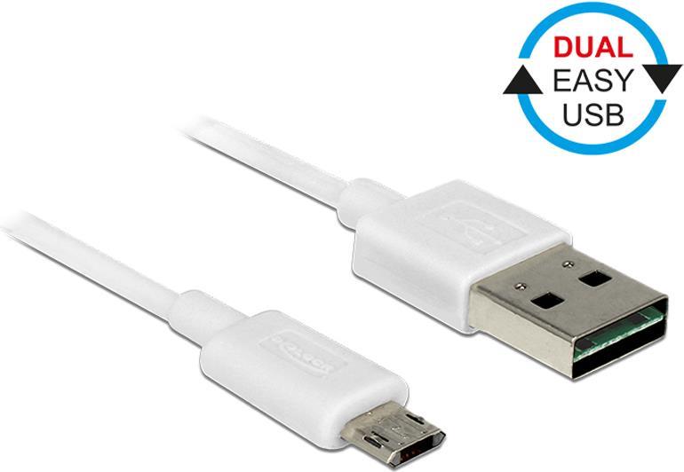 DeLOCK EASY-USB - USB-Kabel - USB (M) - bis - 5-polig Micro-USB Typ B (M) - 2,0m (USB/USB2.0) - umkehrbarer A-Anschluss, umkehrbarer Mikro B Stecker - weiß (84808)