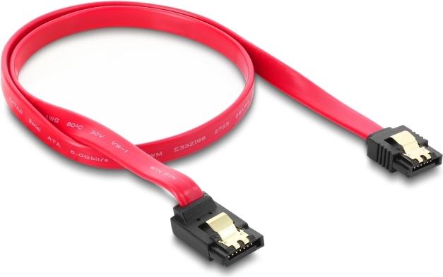 Delock Kabel SATA 6 Gb/s Stecker gerade > SATA Stecker oben gewinkelt 50 cm rot Metall.