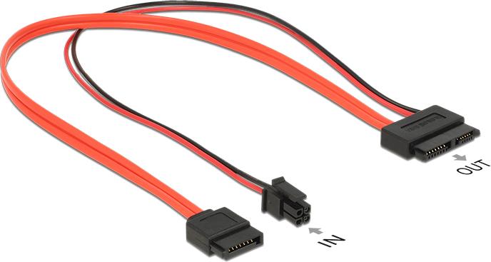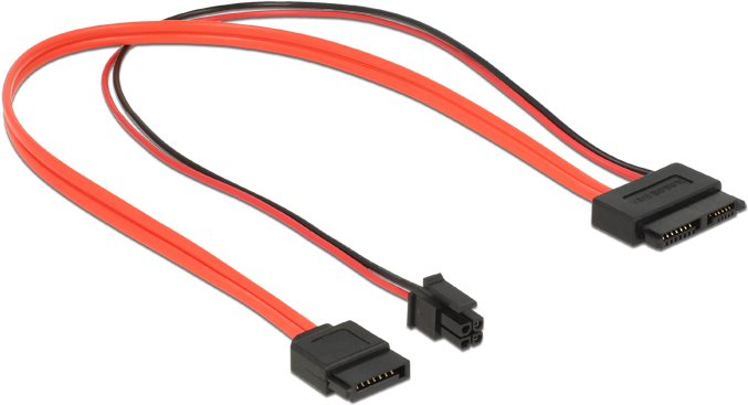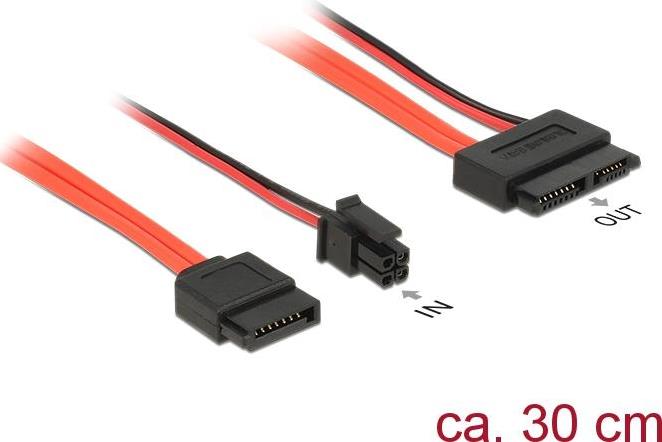 DeLOCK - SATA-Kabel - Serial ATA 150/300/600 - Slimline SATA (R) bis 4 PIN ATX12V, SATA - 30 cm - Schwarz, Rot
