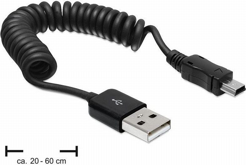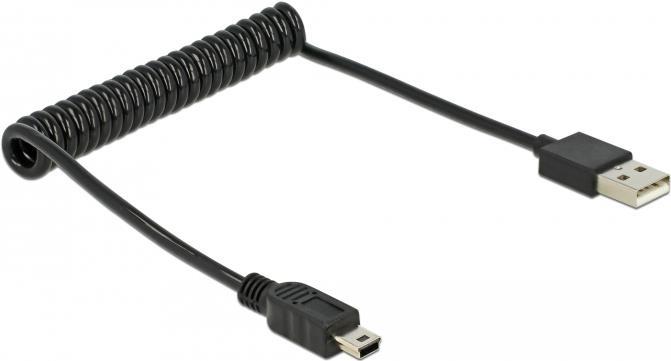 DeLOCK - USB-Kabel - USB Typ A, 4-polig (M) - Mini-USB, Typ B (M) - 60cm - aufgespult - Schwarz (83164)